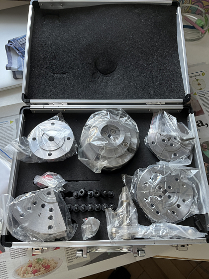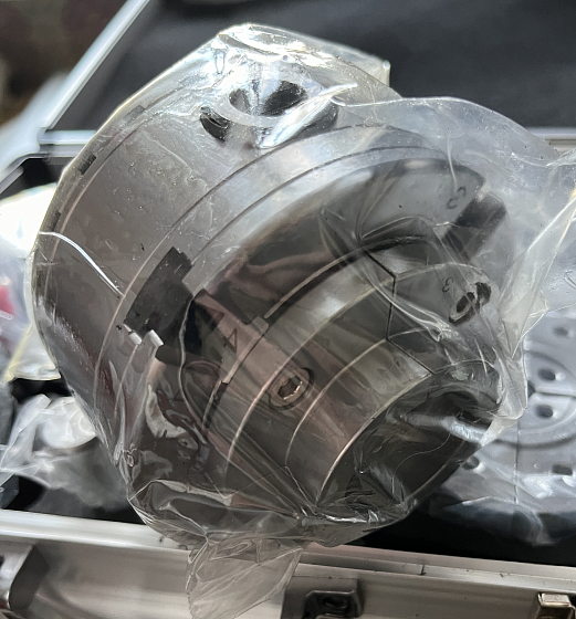 Токарный патрон, диаметр 95 мм, присоединительная резьба M33х3.5, комплект сменных кулачков, зажимной ключ под квадрат, делительное приспособление на патроне, винтовая вставка, ключ шестигранный, кейс.