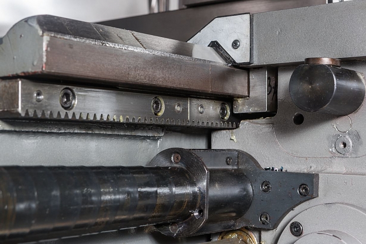 Коробка подач GH-2640 ZH DRO имеет 65 режимов продольных и поперечных автоматических подач для нарезки метрической, дюймовой, модульной и питчевой резьб. При этом частота биений на шпинделе не превышает 9 микрон. Станок помещен на массивную станину из высокотехнологичного чугуна, что позволяет эффективно гасить вибрации и отводить тепло. Направляющие станины подготавливаются по фирменной технологии производителя. Предусмотрены ускоренное перемещение суппорта, педаль тормоза и аварийного отключения.